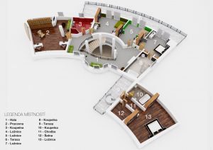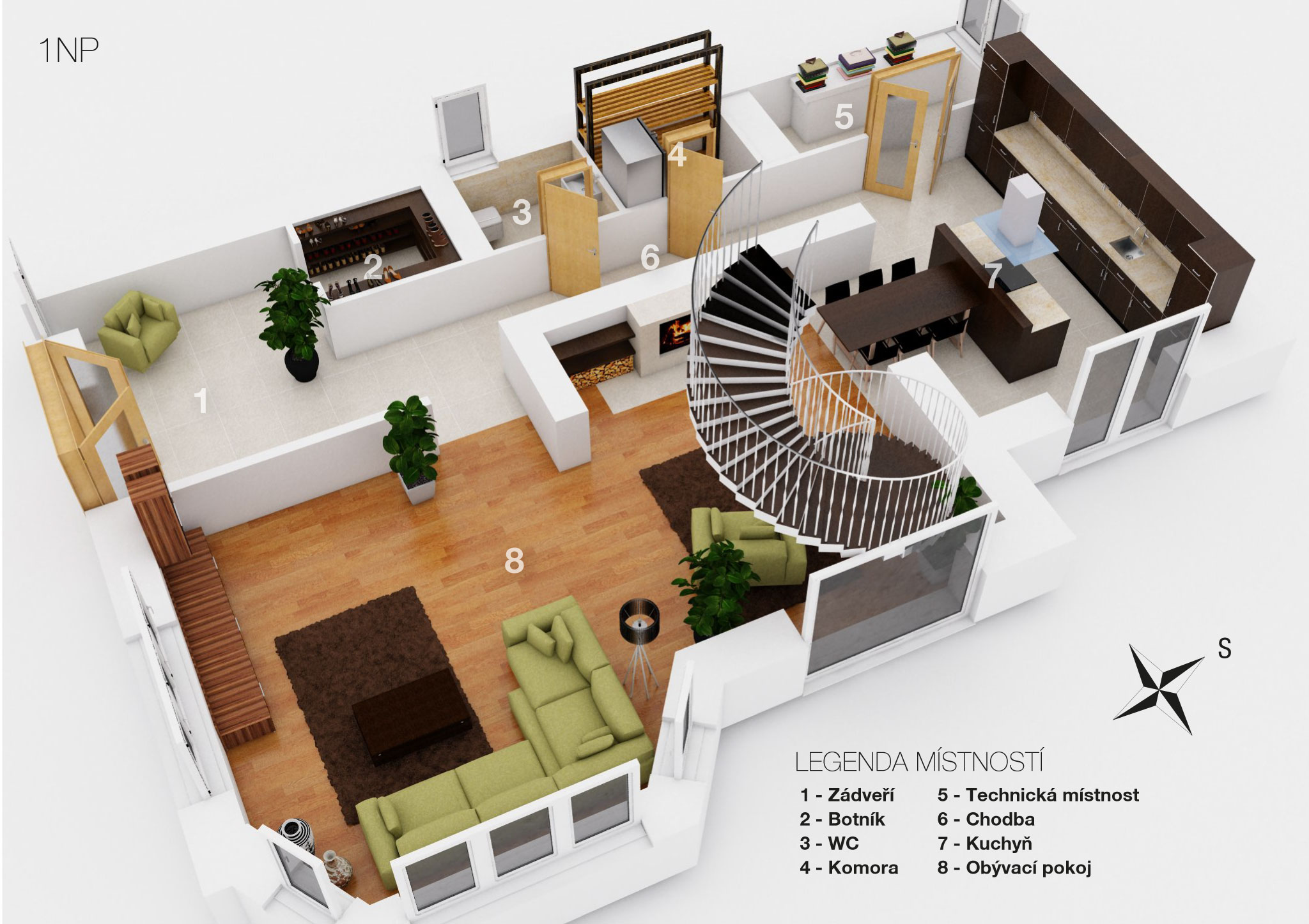 Součástí prodejní prezentace je též vytvoření 3D půdorysů jednotlivých podlaží, tak aby zájemce dostal ucelenou představu o nemovitosti.